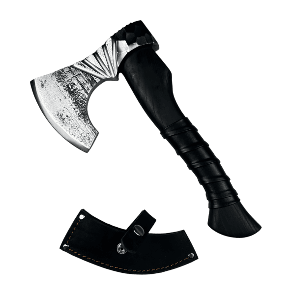 Силовой топор с выразительным декоративными вырезами на голове топора и яркой подачей формы — инструмент, который выглядит так же мощно, как и работает.
