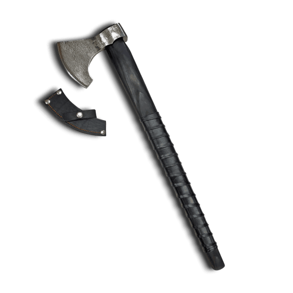 Рукоять из ясеня тёмного оттенка даёт уверенный рычаг и стабильность при силовой работе. Чёрная кожаная обмотка в зоне хвата снижает скольжение, гасит вибрации и улучшает контроль. Древесина пропитана премиальным воском, который защищает рукоять и подчёркивает текстуру.